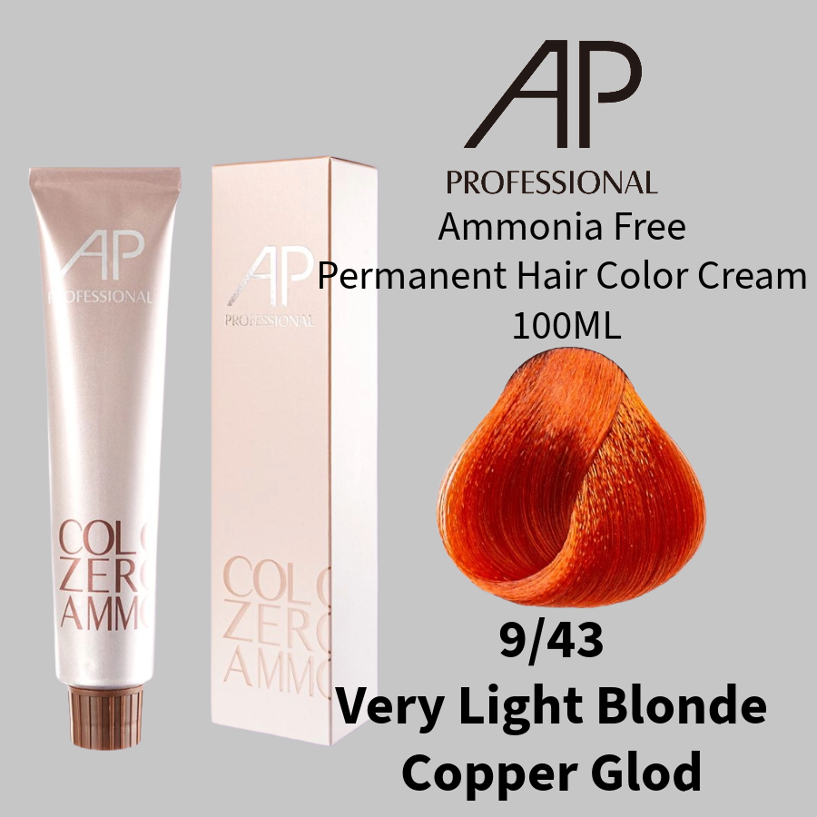 9/43 Very Light Blonde Copper Glod AP Ammonia Free Permanent Hair Color Cream 100ML